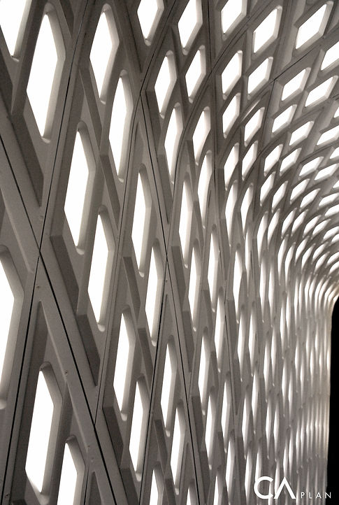 조명이 나오는 입체 패턴은 내부공간의 트랙 라인을 연장하고 중첩시켜 셀을 생성하였으며 조명이 발광하면서 셀에 반사되어 산란할 수 있도록 셀을 입체감 있게 돌출시켰다. 또한 천장에서부터 벽까지 이어지며 감싸는 셀 패턴들은 공간을 컬러풀한 조명으로 채워질 수 있도록 하여 체험의 몰입감을 높일 수 있도록 하였다.
